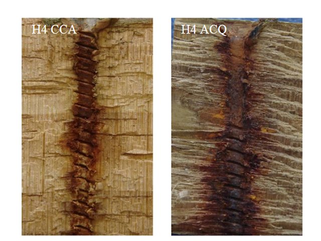 The copper which is impregnated into the timber with several of the preservative treatments has a galvanic reaction with galvanized metal fasteners, (screws, nails, brackets, etc), this causes them to corrode rapidly. If your house is built out CCA or ACQ treated timber, you may have a problem in the future when your house falls apart due to failure of the fasteners.